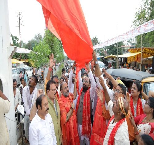 51 फूट उंच महाकाली महोत्सवाच्या ध्वजाचे आमदार किशोर जोरगेवार यांच्या हस्ते ध्वजारोहण