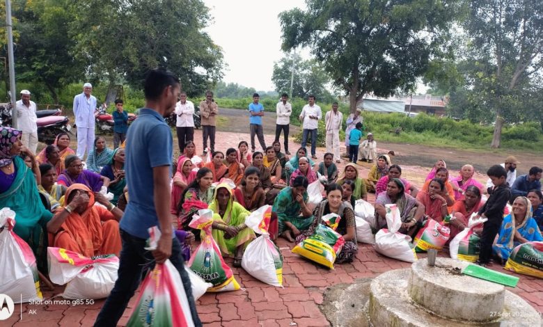 किन्ही येथील अतिवृष्टी ग्रस्तांना रेशन किट्स देऊन धीर देण्याचा प्रयत्न
