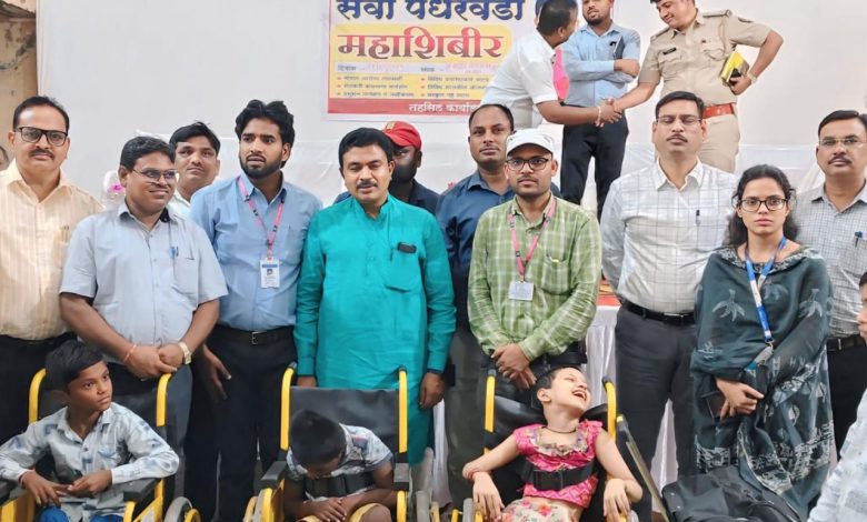 दिनांक 29.09.2025 रोजी पंचायत समिती कोरपना / तहसील अंतर्गत सेवा पंधरवाडा निमित्य, महाशिबिराचे आयोजन करण्यात आले होते. सदर शिबिरामध्ये पंचायत समिती/ तहसील येथील सर्व कर्मचारी व विभागप्रमुख उपस्थित होते. सदर शिबीरामध्ये शालेय शिक्षण घेत असलेले दिव्यांग विद्यार्थ्यांना मा. आमदार राजुरा क्षेत्र – देवराव भोंगळे यांच्या हस्ते समग्र शिक्षा समावेशित शिक्षण, शिक्षण विभाग पंचायत समिती कोरपना यांच्यामार्फत व्हिलचेअर, लहान-मोठे, कृचेस-कुबड्या, श्रवणयंत्र व शैक्षणीक साहीत्याचे” वितरण करण्यात आले.