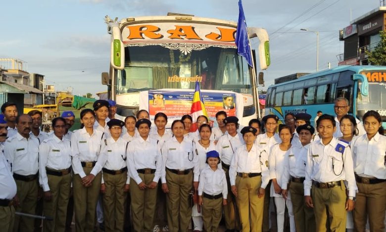 गडचांदूरच्या समता सैनिक दलाच्या ५० महिला सैनिकांचे पथसंचालन करिता दीक्षाभूमी नागपूरला प्रयाण