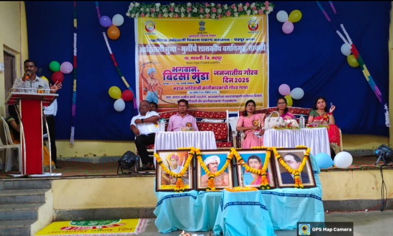 महाराष्ट्र सरकार व आदिवासी विकास विभागाने प्रकल्प कार्यालय चंद्रपूर अंतर्गत स्वातंत्र्य लढ्यातील मोलाची भूमिका बजाविणारे आदिवासीचे जननायक क्रांतिवीर भगवान बिरसा मुंडा यांच्या 150 व्या जयंतीनिमित्त संपूर्ण देशभरात जनजातीय गौरव दिन मोठ्या उत्साहात साजरा केलाजात आहे.