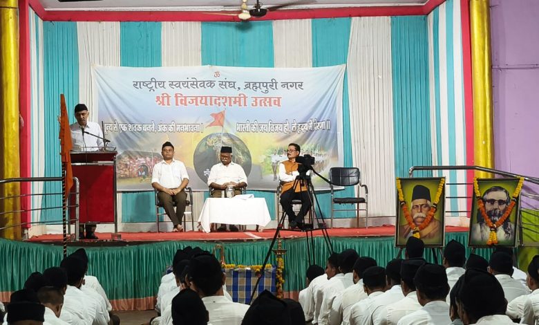 ब्रम्हपुरी :- संघ स्वयंसेवकांनी आज देशातील विपरीत परिस्थितीवर मात करून संघाचे कार्य अधिक गतीने करायचे असून, संघ स्थापनेपासून हेच सुरू आहे. संघाच्या दैनिक शाखेतून घडत गेलेल्या संस्कारामुळेच आजवरची संघाची यशस्वी वाटचाल आहे संघशताब्दी वर्षातही संघ स्वयंसेवकांनी विचलीत न होता ठरवून दिलेले कार्यक्रम अधिकाधिक चांगले केले पाहिजे, असे प्रतिपादन राष्ट्रीय स्वयंसेवक संघाचे पश्चिम क्षेत्र सह प्रचारक चिंतनभाई उपाध्याय पांनी केले.उत्सवा आधी भरपावसात स्वयंसेवकांचे नगरातून पथसंचलन निघाले. ब्रह्मपुरी संघ शाखेच्या तरुण स्वयंसेवकांच्या विजयादशमी उत्सवप्रसंगी ते संबोधित करत होते.
