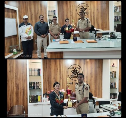 दिनांक 29 सप्टेंबर 2025 रोजी मुंबई येथे महाराष्ट्र राज्य पोलीस महासंचालक कार्यालयात महाराष्ट्र पोलीस दलाचे प्रतिनिधित्व करून राष्ट्रीय आणि आंतरराष्ट्रीय स्तरावर पदकप्राप्त कामगिरी करणाऱ्या पोलीस अधिकारी, अंमलदार, खेळाडू आणि प्रशिक्षकांचा सत्कार सोहळा आयोजित करण्यात आला होता. या प्रसंगी सुनैना डोंगरे हिचा देखील मान्यवरांच्या उपस्थितीत सत्कार करण्यात आला. विशेष पोलीस महानिरीक्षक नागपूर परिक्षेत्र नागपूर श्री संदीप पाटील साहेब वर्धा जिल्हा पोलीस प्रमुख श्री. अनुराग जैन (पोलीस अधीक्षक, वर्धा), श्री. सदाशिव वाघमारे (अपर पोलीस अधीक्षक), श्री. विनोद चौधरी (पोलीस निरीक्षक, स्था. गु. शा.) तसेच प्रशिक्षक श्री. राजू उमरे यांनी सुनैना डोंगरे हिच्या उल्लेखनीय क्रीडा यशाबद्दल तिला अभिनंदन करून सत्कार केला.