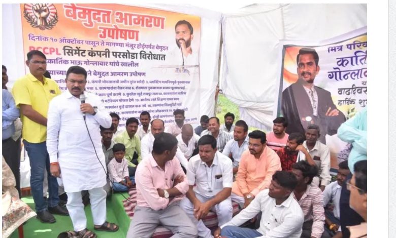 कोरपना:-आरसीसीपीएल सिमेंट कंपनी विरोधात परसोडा येथील कार्तिक गोनलावार यांनी शुक्रवार दिनांक १० पासून विविध मागण्यासाठी बेमुदत आमरण उपोषण सुरू केले होते. यावर रविवारी आमदार देवराव कंपनीच्या मॅनेजरसह बेरोजगारीच्या विषयावर रस्त्या विषयावर चांगले धारेवर धरले आणि सकारात्मक उत्तर कंपनीकडून देण्यात आले बेरोजगार स्थानिकांना रोजगार देण्यासाठी अधिकाऱ्यांना सांगितलेभोंगळे यांनी सकारात्मक चर्चा होऊन तोडगा काढण्यात आल्याने आमदार देवराव भोंगळे यांच्यामध्ये मध्यस्थीतीने उपोषण मागे घेण्यात आले.