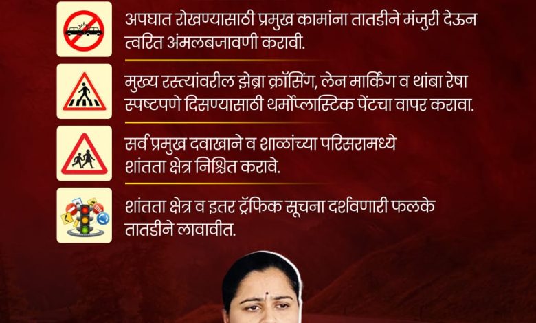 शहरवासीयांच्या सुरक्षिततेला सर्वोच्च प्राधान्य देत, खासदार प्रतिभा धानोरकर यांनी रस्ते अपघात रोखण्यासाठी प्रमुख कामांना तातडीने मंजुरी देऊन त्यांची अंमलबजावणी त्वरित सुरू करण्याची अपेक्षा व्यक्त केली आहे.