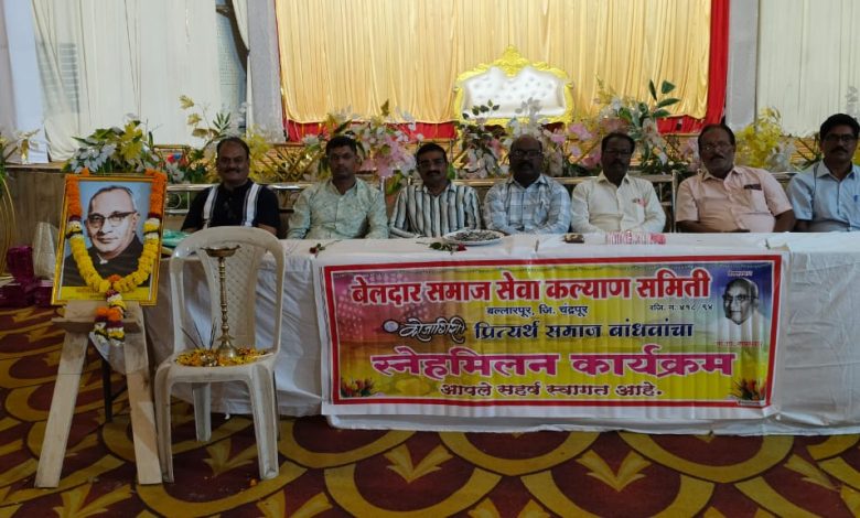 बेलदार समाजसेवा कल्याण समिती बल्लारपूर तर्फे समाज बांधवांचा कोजागिरी व गुणवंत विद्यार्थ्यांचा सत्कार कार्यक्रम बालाजी सभागृह येथे दि. ११/१०/२०२५ ला पार पडला