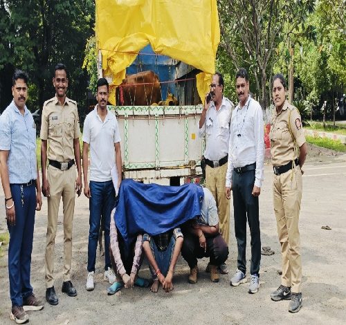 नाकाबंदी दरम्यान पिकअप क्रमांक MH 49 AT 0360 हे वाहन थांबविण्यात आले. तपासणीअंती वाहनात 13 गायी आखूड दोरखंडाने बांधलेल्या अवस्थेत, वाहनाच्या क्षमतेपेक्षा अधिक प्रमाणात आणि कत्तलीच्या उद्देशाने वाहतूक केल्या जात असल्याचे आढळले.
