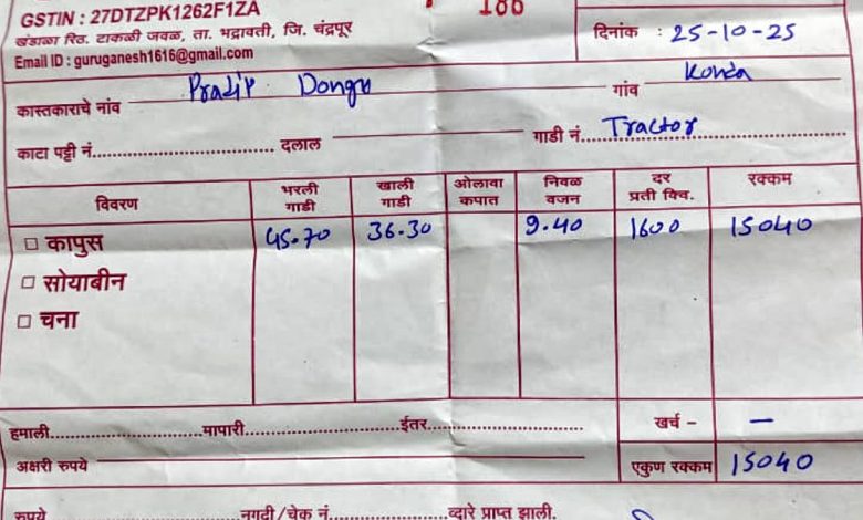 ४ एकरात ९.५० क्विंटल सोयाबीन १६०० रुपये क्विंटल १५०४० रुपये