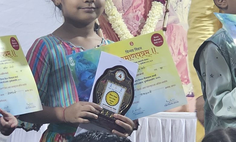 राज्यस्तरीय गीता स्पर्धेत चंद्रपूरच्या अंबर राठीचा गौरव — “प्रोत्साहन पुरस्कार” प्राप्त