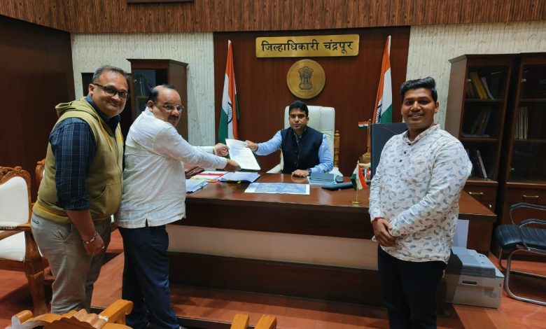 चंद्रपूर जिल्हातील आत्महत्याग्रस्त, तसेच भीषण पुरात मृत्यू झालेल्या शेतकरी कुटुंबातील मुलांच्या शैक्षणिक पुनर्वसनासाठी भारतीय जैन संघटने तर्फे आज जिल्हाधिकारी विनय गोंडा सर यांना निवेदन सादर करण्यात आले.