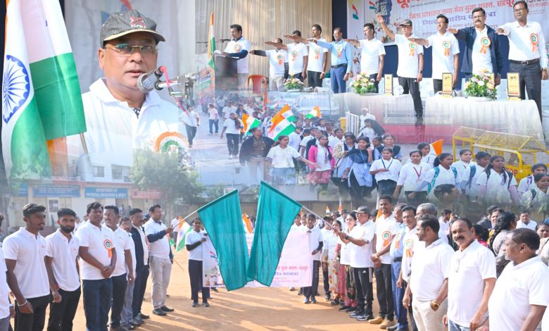 चंद्रपूर :- सरदार पटेल महाविद्यालयातील राष्ट्रीय सेवा योजना विभागासह मेरा युवा भारत, युवा कार्यकम व खेळ मंत्रालय, भारत सरकार यांच्या संयुक्त विद्यमाने भारताचे लोहपुरुष आणि राष्ट्रीय एकात्मतेचे शिल्पकार सरदार वल्लभभाई पटेल यांच्या १५० व्या जयंती निमित्त ‘युनिटी मार्च’ पदयात्रा मोठ्या थाटात पार पडली.