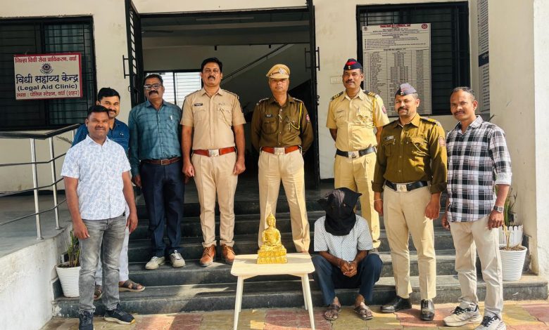 दिनांक 28/10/2025 ते दि. 29/10/2025 रोजी चे रात्रदरम्यान वर्धा शहरातील मास्टर कॉलणी रहिवासी परीसरात असलेल्या रमाई आंबेडकर उद्यानातील बुद्ध विहारामध्ये असलेल्या अंदाजे 5 किलोग्रॅम वजनाची भगवान गौतम बुद्धाची पितळी मुती कि. 6000 रू ची कोणीतरी अज्ञात ईसमाने चोरी केल्यावरून पोलीस स्टेशनला गुन्हा नोंद करण्यात आला होता.