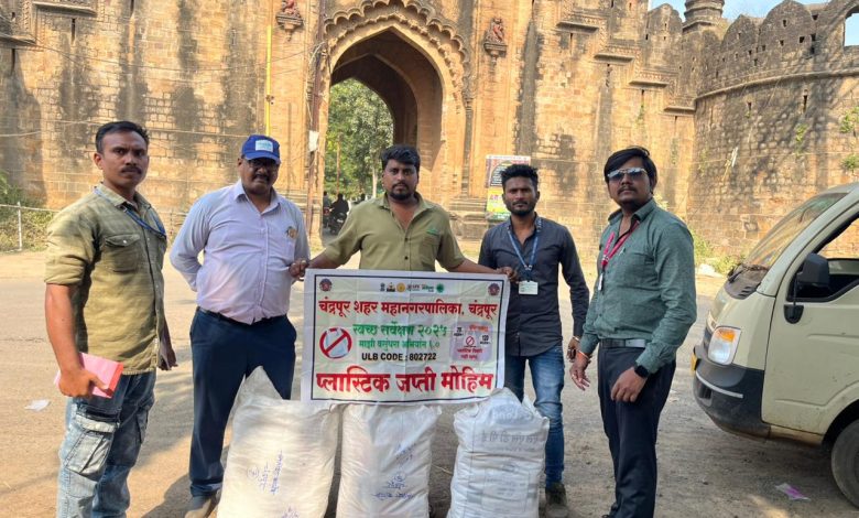 सोमवार 24 नोव्हेंबर रोजी पठाणपुरा गेट रोडवरून येत असलेल्या एका दुचाकी वाहनावर सिंगल यूज प्लास्टिक पिशव्या वाहून नेण्यात येत असल्याचे मनपा उपद्रव शोध पथकास आढळून आले. त्याचा मागोवा घेतल्यानंतर तपासात समजले की सदर पिशव्या या शंकर आत्राम यांच्या मालकीच्या आहेत. तेव्हा तात्काळ छापा टाकून एकूण 3 पोते (अंदाजे 90 किलो) सिंगल यूज प्लास्टिक पिशव्या जप्त करण्यात आला असून नियमांनुसार 5 हजार रुपये दंड आकारण्यात आला आहे.