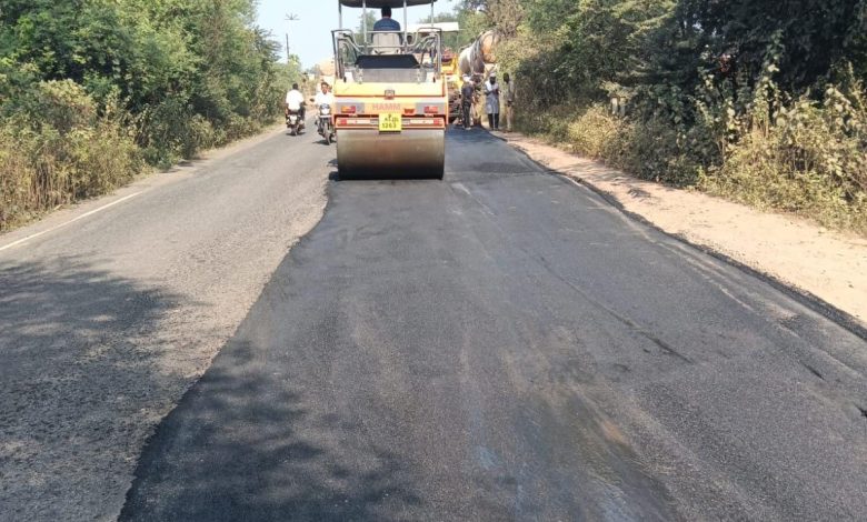 मुल-चंद्रपूर राष्ट्रीय महामार्गावर बीटी पॅचवर्क, ओव्हरले आणि थर्मो प्लास्ट पेंटिंग