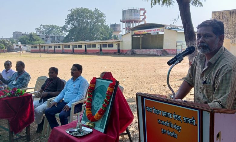 भारत शिक्षण प्रसारक मंडळ सावली द्वारा संचालित मुख्यमंत्री माझी शाळा सुंदर शाळा प्रथम क्रमांक प्राप्त विश्वशांती विद्यालय तथा उच्च माध्यमिक विद्यालय सावली येथे महात्मा ज्योतिबा फुले यांच्या १३५ पुण्यतिथीचे आयोजन करण्यात आले.त्याप्रसंगी प्रमुख पाहुणे म्हणून विद्यालयाचे मुख्याध्यापक रवींद्र मुप्पावार,पर्यवेक्षक राजेश झोडे, ज्येष्ठ शिक्षक संजय ढवस,किशोर संगीडवार, श्वेता खर्चे,तसेच प्रमुख मार्गदर्शक धनंजय गुरनुले म्हणून उपस्थित होते.या प्रसंगी शाळेतील विद्यार्थ्यांनी महात्मा ज्योतिबा फुले यांच्या विचारावर प्रकाश टाकला.