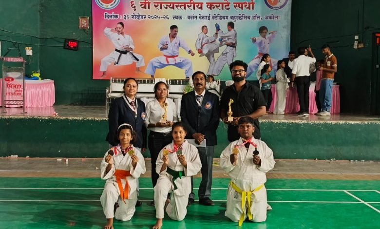 दि ३०/११/२०२५ ला झालेल्या 6 वि राज्यस्तरीय अकोला येथे कराटे स्पर्धा संपन्न झाली यामध्ये चंद्रपूर जिल्ह्यातील कोरपना तालुक्यातील गुणवंत व होतकरू मुलांनी आपल्या कोरपणा तालुक्याचं नाव उंचावण्यासारखी कामगिरी करून दाखवली त्यामध्ये, १.वेदिका साईनाथ जयभये. (गोल्ड मेडल)२. नैनिशा नागार्जुन कोम्मीनेनि (गोल्ड मेडल) ३. शौर्य संजय मेश्राम. (गोल्ड मेडल) यांनी या स्पर्धेत भाग घेउन यश प्राप्त केले व या यशामागे सर्वात मोठी कामगिरी यांचे कोच सुरज विजय खोबरकर ज्यांनी यांना या स्पर्धेसाठी तयार केलं व यांच्या मार्गदर्शनाखाली या स्पर्धेमध्ये विद्यार्थ्यांनी उत्तम कामगिरी केली व या स्पर्धेत भाग घेऊन मेडल पटकावणाऱ्या विद्यार्थ्यांचे दिल्ली येथे होणाऱ्या नॅशनल चॅम्पियनशिप यामध्ये सिलेक्शन झाले