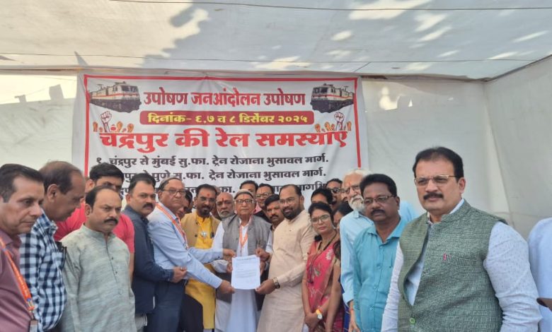 चंद्रपूर–मुंबई सुपरफास्ट ट्रेन तसेच चंद्रपूर–पुणे फास्ट ट्रेन रोज भुसावळ मार्गे सुरू करण्याच्या प्रमुख मागण्यांसह रेल्वे संबंधित इतर मागण्यांना घेऊन रेल्वे प्रवासी सेवा संस्थेच्या वतीने जिल्हाधिकारी कार्यालयासमोर ६ डिसेंबरपासून आंदोलन सुरू करण्यात आले आहे.