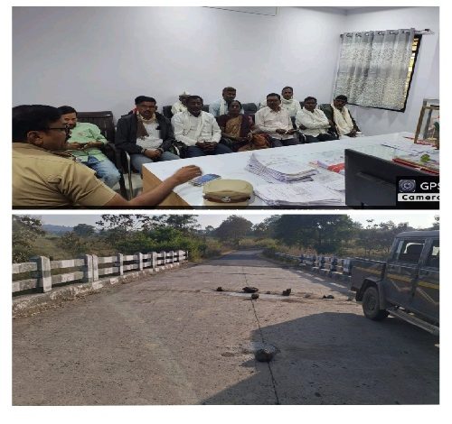 या बैठकीत सार्वजनिक बांधकाम विभागाने खड्डे बुजविण्याचे काम सुरू केलेले असून. त्यांनी संपूर्णतः डांबरीकरण केलेल्या रस्त्याचे काम हाती घेतलेले आहे. तसेच जिल्हा परिषद बांधकाम विभागाने सुद्धा जिल्हा परिषदचे असलेले रस्ते यांचे सुद्धा खड्डे बुजविण्याचे काम तात्काळ हाती घेऊन पूर्ण करू असे सांगण्यात आले.यासंदर्भात बैठक घडवून आणली या बैठकीला सुग्रीव गोतावळे,गणेश वाघमारे,बंडू राठोड सौ सुमनबाई शेळके, शिवमोरे मामा,मोरताटे,लक्ष्मण मडावी,लहुजी गोतावळे,कोटंबे,राठोड,विष्णू अंपल्ले,सुशील गायकवाड व अन्य कार्यकर्ते मोठ्या संख्येने उपस्थित होते.