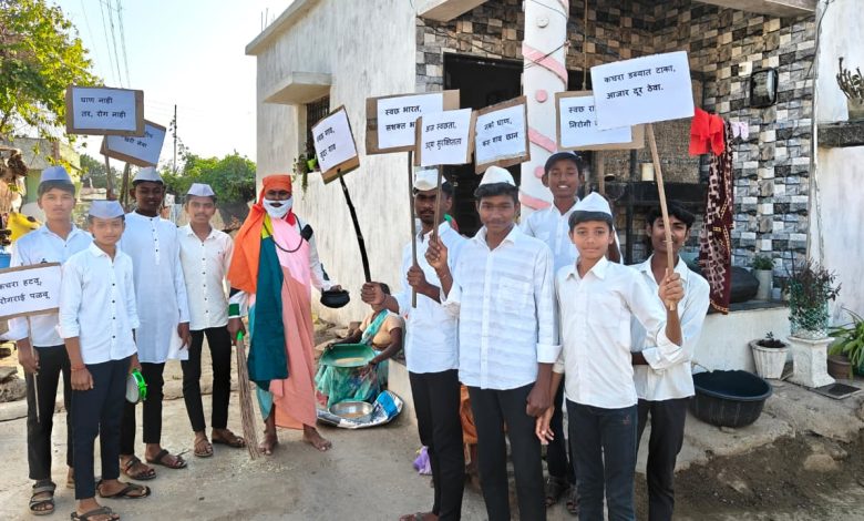 गाडगेबाबांच्या भूमिकेतून गुरुजींनी दिला स्वच्छतेचा संदेश