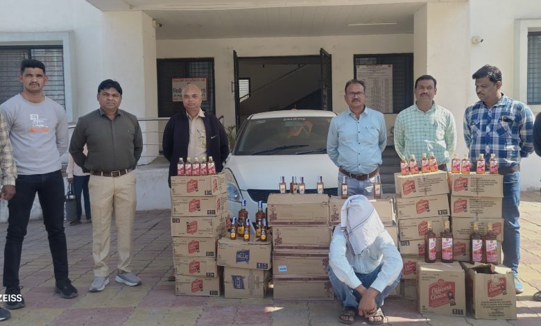 पोलीस निरीक्षक संतोष ताले, हे पोलीस स्टॉफसह केंद्रीय पेट्रोलींग करीत असता सिध्दार्थ नगर, येथे रोडने एक चारचाकी वाहन जाताना दिसले व पोलीसाची गाडी पाहुन वाहन भरधाव वेगाने जात असल्याने सदर वाहनावर संशय आल्याने पोलीस चालक आकाश कुभरे यांचे संतर्कपणामुळे सदर एक पांढऱ्या रंगाची मारोती सुझुकी कंपनीची स्वीफ्ट व्हिडीआय क. एम.एच.46/डब्लु/1876 चारचाकी वाहन पाण्याची टाकी जवळ सिध्दार्थ नगर, चितोडा रोडवर थांबवुन त्यास ताब्यात घेवुन, सदर वाहन चालक यास त्याचे नाव गाव विचारले असता. त्याने त्याचे नाव मिथुन गोपालराव येळकर, वय 38 वर्ष रा. गणेश नगर, बोरगाव मेघे, वर्धा. असे सांगितले असता. त्याचे ताब्यातील एक पांढऱ्या रंगाची मारोती सुझुकी कंपनीची स्वीपट व्हिडीआय क. एम.एच.46/डब्लु/1876 चारचाकी वाहनाची पंचासमक्ष झडती घेतली असता. गाडीची मागचे सिटवर व डिक्कीमध्ये खाकी रंगाचे खर्डाचे खोक्यात वेगवेगळ्या कंपनीच्या विदेशी दारूने भरलेल्या