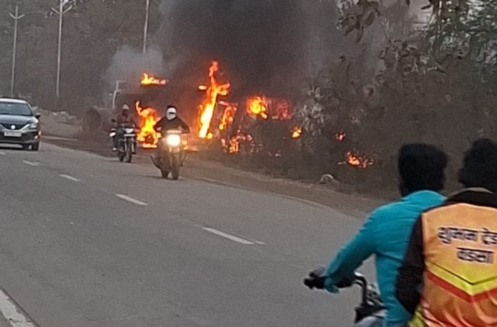आज दिनांक २५ डिसेंबर २०२५ सायंकाळी साडेपाच वाजताच्या दरम्यान ब्रह्मपुरी नागभीड राज्य महामार्गावरील खडतकर कन्स्ट्रक्शन कंपनीच्या अगदी गेट समोर डिझेलचा टँकरने अचानक पेट घेतला. टँकरला आग लागल्याचे समजताच टँकर चालकाने प्रसंवधान राखत टँकर राज्य महामार्गाच्या कडेला उतरविला व स्वतः बाहेर पडून स्वतःचा जीव वाचविला. टँकरने पेट घेतल्यामुळे आगीची लोळ आकाशात पसरले होते. घटनेची माहिती मिळताच ब्रह्मपुरी नगरपालिकेचे अग्निशमन वाहनासह दलाचे कर्मचारी मुकेश राऊत, आशिष मालोडे, पवन दिवटे यांनी घटनास्थळ गाठत आग आटोक्यात आणली. घटनेची माहिती मिळताच ब्रह्मपुरी पोलिसांनी घटनास्थळ गाठून पंचनामा केला.
