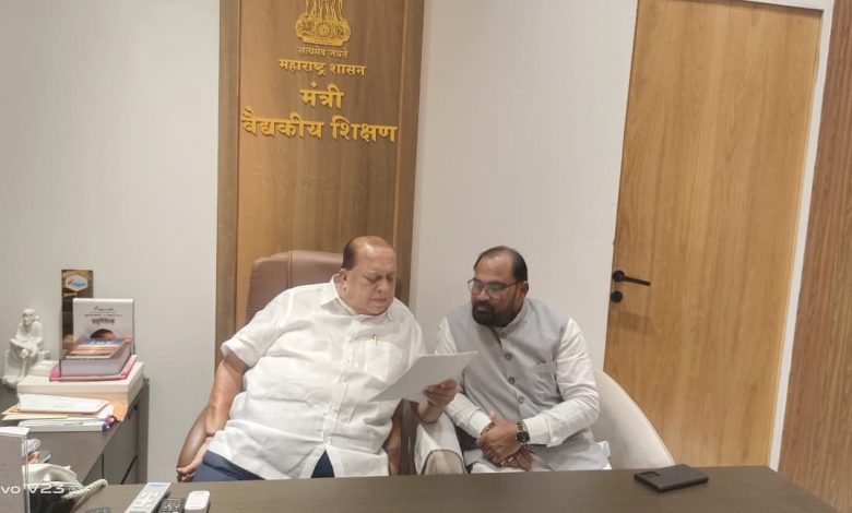 वैद्यकीय शिक्षण व संशोधन विभाग अंतर्गत सन २०२३ मध्ये राबविण्यात आलेल्या भरती प्रक्रियेमधील ‘सुतार’ पदावरील पात्र उमेदवारांना तात्काळ नियुक्ती देण्यात यावी, अशी ठोस मागणी आमदार किशोर जोरगेवार यांनी बुधवारी मुंबई मंत्रालय येथे राज्याचे वैद्यकीय शिक्षण मंत्री हसनजी मुश्रीफ यांच्याकडे केली. यावेळी सदर मागणीच्या संदर्भात आमदार किशोर जोरगेवार यांची वैद्यकीय शिक्षण मंत्र्यांशी सकारात्मक चर्चा झाली.