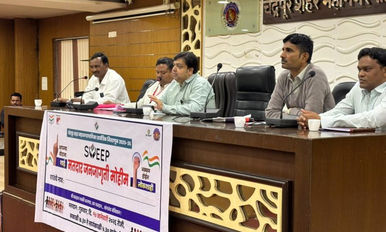 चंद्रपूर :_ शहर महानगरपालिका सार्वत्रिक निवडणूक २०२५-२६ च्या पार्श्वभूमीवर मतदारांमध्ये मतदानाबाबत जनजागृती निर्माण करणे, मतदानाचे महत्त्व पटवून देणे तसेच मतदानाची टक्केवारी वाढविण्याच्या उद्देशाने चंद्रपूर शहर महानगरपालिका क्षेत्रातील सर्व शाळा व महाविद्यालयांमध्ये (SVEEP) मतदान जनजागृती अभियान राबविण्यात येत असल्याची माहिती अतिरिक्त आयुक्त चंदन पाटील यांनी दिली.