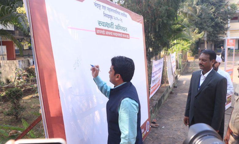 स्वीप (सिस्टमॅटिक वोटर्स एज्युकेशन अँड इलेक्टोरल पार्टिसिपेशन) अंतर्गत मतदान जनजागृती अभियान चंद्रपूर शहरात राबविले जात असुन यासाठी स्वाक्षरी अभियानाची सुरवात जिल्हाधिकारी विनय गौडा जी.सी,मुख्य कार्यकारी अधिकारी पुलकित सिंह, महानगरपालिका आयुक्त अकुनुरी नरेश यांच्या हस्ते जनता महाविद्यालय येथील कार्यक्रमात करण्यात आले.
