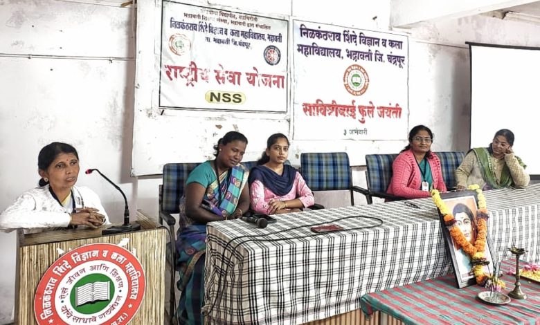 स्थानिक निळकंठराव शिंदे विज्ञान व कला महाविद्यालयात राष्ट्रीय सेवा योजनेच्या वतीने कार्यक्रम साजरा करण्यात आला या कार्यक्रमाच्या अध्यक्ष उपप्राचार्य, डॉ. अपर्णा धोटे प्रमुख पाहुणे म्हणून डॉ. किरण जुमडे, सौ. सुकेशीनी भवसागर, कु. रोशनी जॉन, कु.आकांक्षा आवारी इत्यादी प्रमुख मान्यवराच्या उपस्थितीत कार्यक्रम संपन्न झाला