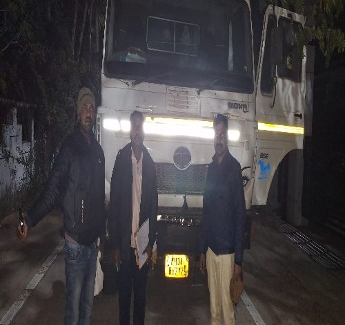 पोंभूर्णा तालुक्यातील थेरगाव नदीघाटावरून अवैध रेती भरलेला वाहतूक करणारा ट्रक क्र.(तोMH34BH7179) रविवारला रात्री एक वाजताच्या सुमारास देवाडा खुर्द -पोंभूर्णा मार्गावर तहसीलदार मोहनिश शेलवटकर यांनी हायवा ट्रकची चौकशी केली असता संबंधिताकडे वाळू परवाना नव्हता व अवैद्यरित्या रेती तस्करी करत असल्याचे आढळून आल्याने रेतीने भरलेले ट्रक जप्त करून तहसील कार्यालयाच्या परिसरात लावण्यात आले व पंचनामा करण्यात आला आहे.सदर अवैध रेती वाहतूक करणारा हायवा ट्रक चंद्रपूर येथील बापू दुर्गम यांचे असल्याची माहिती आहे.