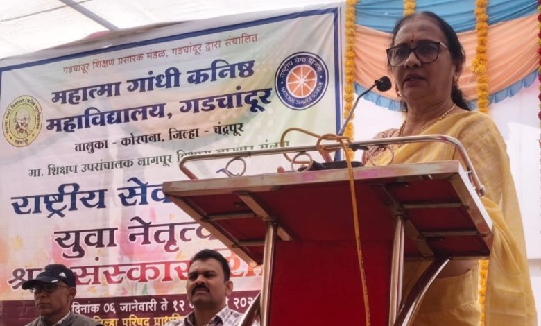 युवा नेतृत्व व श्रमसंस्कार शिबिरामध्ये राष्ट्रीय सेवा योजना स्वयंसेवक व ग्रामस्थ महिलांना महिला सक्षमीकरणाची आजही गरज आहे असे आदर्श राज्य पुरस्कार प्राप्त शिक्षिका तथा सेवानिवृत्त प्राचार्या स्मिता चिताडे यांनी ग्रामस्थ महिला व विद्यार्थ्यांना मार्गदर्शन करताना केले.