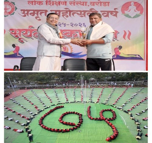 प्रा. पाटील आपल्या अध्यक्षीय भाषणात म्हणाले की, लोकशिक्षण संस्थेच्या अमृत महोत्सवी वर्षानिमित्त विविध उपक्रम राबविण्यात येत असून, सूर्यनमस्कार यज्ञ उपक्रमाला यंदा बारा वर्षे पूर्ण झालेत. विद्यार्थ्यांनी नियमित सूर्योदयापूर्वी उठावे तसेच शाळेची सुरुवात सूर्यनमस्काराने केल्यास विद्यार्थ्यांमध्ये सकारात्मक ऊर्जा निर्माण होऊन ते निरोगी राहतील, असे आवाहन त्यांनी केले.