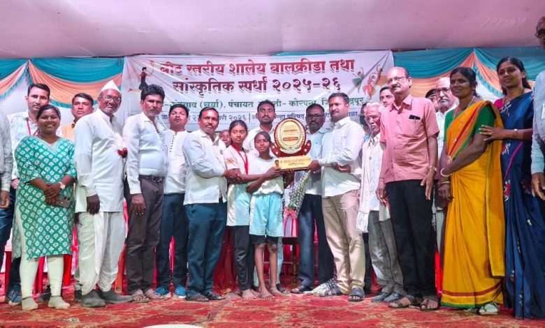 लखमापूर येथे जिल्हा परिषद उच्च प्राथमिक शाळेच्या मैदानावर बीटस्तरीय शालेय बाल क्रीडा व सांस्कृतिक महोत्सव 2025-26 उत्साहात पार पडला. या महोत्सवाचे उद्घाटन श्रीकांत बोबडे साहेब, संवर्ग विकास अधिकारी पंचायत समिती कोरपणा यांच्या हस्ते झाले.