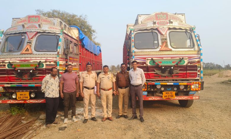 वाळू माफियांचा गोरखधंदा उघडकीस : एकाच नंबर प्लेटवर दोन ट्रक ; 75 लाखांचा मुद्देमाल जप्त