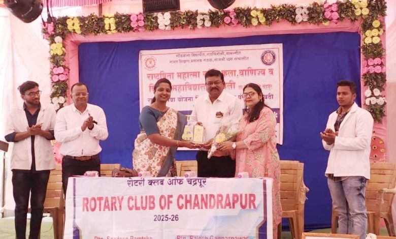या कार्यक्रमाचे मुख्य अतिथी श्री. संदीप रामटेकें, अध्यक्ष, रोटरी क्लब चंद्रपूर यांनी आपल्या भाषणात रोटरी क्लबच्या सामाजिक बांधिलकीचा उल्लेख करत सांगितले की, “ग्रामीण भागातील नागरिकांपर्यंत आरोग्यसेवा पोहोचविणे ही काळाची गरज आहे. ‘एनएसएस’ स्वयंसेवकांचा उत्साह, शिस्त व सेवाभाव प्रेरणादायी असून भविष्यातही अशा उपक्रमांसाठी रोटरी क्लब सदैव सहकार्य करेल.”