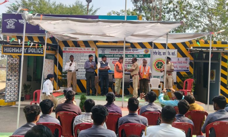 सदर कार्यक्रमातील उपस्थित सागर ज्ञानपिठ कॉन्वेंट जाम चे विद्यार्थी,ITI चे प्रशिक्षणार्थी ग्रामपंचायत सदस्य, इतर नागरिक तसेच चालक यांना वाहतुक नियमाचे संबधाने मान्यवरांनी मार्गदर्शन केले तसेच आपतकालीन स्थितित हदयरोग,मिरगी, अपघातात फॅक्चर झाल्यास काय करावे याबाबत डॉ उत्कर्ष वाघमारे यांनी CPR चे डेमो दाखवून इत्तर विषयी मार्गदर्शन केले तसेच आम्ही दिलिप थाटे प्रभारी अधिकारी नी उपस्थित लोकांना वाहतुकीचे नियमा बाबत तसेच समुद्धी महामार्ग अपघात घडल्यास टोल फ्री क्र 8181818155, तसाच राष्ट्रीय महामार्गवर अपघात घडल्यास टोल फ्री क्र 1033, पोलीस मदत डॉयल क्र 112, व अम्बुलस क्र108 यावर माहिती देण्यात यावी सविस्तर मार्गदर्शन केले तसेच Psi तोडासे यांनी उपस्थित प्रमुख पाहुण्याचे आभार मानुन कार्यक्रमाची सांगता करण्यात आली.