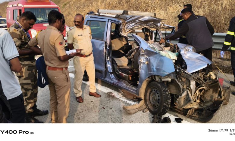 अपघात दिनांक व वेळ* :- 01/02/2026 चे 06/20 वा. सुमारास अपघातातील वाहन :- 1. कार क्रमांक:- MH-05-AX-7612 2. कंटेनर क्रमांक :-MH-46-CL-1556