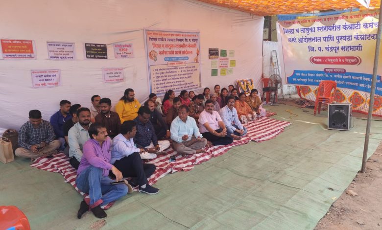 स्वच्छ भारत मिशन व जलजीवन मिशन या कार्यक्रमात जिल्हा परिषद अंतर्गत महाराष्ट्रात कार्य करत असलेले सर्व कंत्राटी व बाह्यस्त्रोत कर्मचारी यांचे पगार गेल्या पाच महिन्यापासून या जुलमी सरकारांनी थांबवलेले आहे. त्याविरुद्ध महाराष्ट्रातील सर्व जिल्ह्यात आंदोलन पुकारण्यात आले असून, पाणी पुरवठा व स्वच्छता विभागाचे प्रधान सचिव, राज्याचे पाणी पुरवठामंत्री यांना वारंवार निवेदन देऊन सुद्धा त्यांनी यावर कुठल्याही प्रकारची कार्यवाही केली नसल्याने महाराष्ट्र राज्याचे मुख्यमंत्री यांनी या विभागात लक्ष घालावे व कंत्राटी व बाह्यस्त्रोत कर्मच-यांच्या समस्या निकाली काढाव्या असे प्रतीपादन भारतीय मजदुर संघटना चंद्रपूर जिल्हाध्यक्ष बंडू हिरवे यांनी केले आहे.