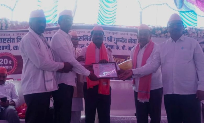 २० आंतरराज्य राष्ट्रसंत तुकडोजी महाराज साहित्य विचारकृती संमेलन गोयेगाव जि. आसिफाबाद (तेलंगणा स्टेट) येथे नुकतेच संपन्न झाले होते. यावेळी संमेलनाध्यक्ष एड. पारोमिता गोस्वामी, उद्घाटक आम. कोवा लक्ष्मी, परिषदेचे चिटणीस एड. राजेंद्र जेनेकर, उपाध्यक्ष विलास उगे, श्रीकांत धोटे, अर्जुन पारुडकर यांच्या उपस्थितीत त्यांना सन्मानित करण्यात आले.
