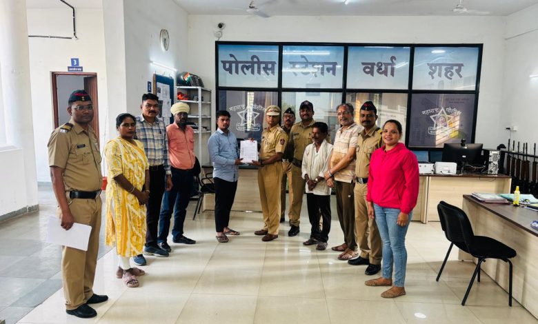 सदरची कार्यवाही मा. श्री. सौरभ कुमार अग्रवाल, पोलीस अधीक्षक, वर्धा. श्री. सदाशिव वाघमारे, अपर पोलीस अधिक्षक, वर्धा श्री. प्रमोद मकेश्वर, उप विभागीय पोलीस अधिकारी, वर्धा, पोनी/विनोद चौधरी, स्थानिक गुन्हे शाखा, वर्धा यांचे मार्गदर्शना खाली पोहवा/अमोल आत्राम, पोहवा आशिष महेशगीरी, नेमणुक स्थानिक गुन्हे शाखा, वर्धा, पो.नि./संतोष ताले, मपोहवा वैशाली करमनकर, मपोशि/करिश्मा परचाके पोलीस स्टेशन, वर्धा (शहर) यांनी केली आहे.