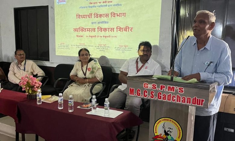 गडचांदूर येथील महात्मा गांधी कॉलेज ऑफ सायन्स मध्ये विद्यार्थी विकास विभागाद्वारे व्यक्तिमत्व शिबिराचे आयोजन आज पासून दिनांक 25 फेब्रुवारी ते 27 फेब्रुवारी दरम्यान संपन्न होणार आहे. या शिबिराचे उद्घाटन मा.श्री विठ्ठलरावजी थिपे उपाध्यक्ष गडचांदूर शिक्षण प्रसारक मंडळ गडचांदूर यांच्या हस्ते आज करण्यात आले. या कार्यक्रमासाठी प्रमुख अतिथी म्हणून डॉ. अनिता वाळके प्राचार्या,कर्मवीर महाविद्यालय मुल यांचे मोलाचे मार्गदर्शन झाले. त्याचबरोबर एड. दीपांजली मंथनवार मॅडम कायदेविषयक सल्लागार कोरपना न्यायालय, प्रा. चेतना येरणे मॅडम महात्मा गांधी विद्यालय, प्रा. शरद बेलोरकर शरदराव पवार कला व वाणिज्य महाविद्यालय गडचांदूर यांनीही मार्गदर्शन केले.