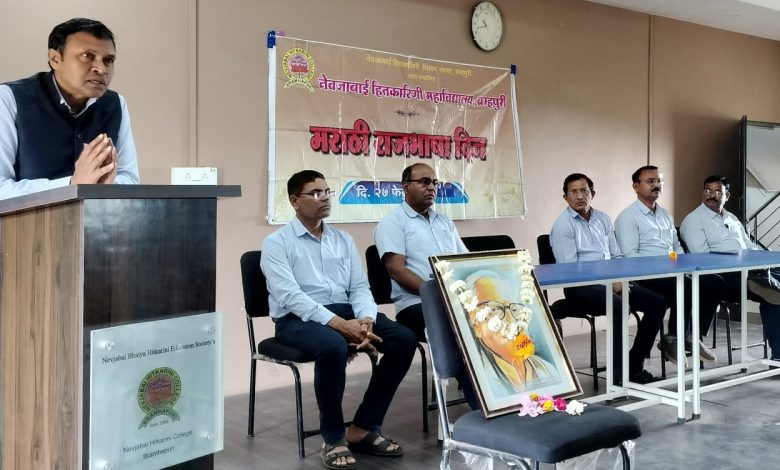 ब्रह्मपुरी :- आज बारा कोटी लोकं मराठी बोलतात.व्यक्त होण्यासाठी मातृभाषा कामात येते.मराठीतले समृद्ध साहित्य वाचा.कवी कुसुमाग्रज हे मानवतावादी कवी होते.त्यांच्या कवितां आजही मनपटलावर आहेत. त्यांची जयंती आहे.अनेक कवी,लेखकांनी आपल्या मातृभाषेची मान उंचावण्याचा प्रयत्न केला.आपणही माय मराठीचा सन्मान करुन तिचे संवर्धन करा!” असे आवाहन प्राचार्य डॉ सुभाष शेकोकरांनी केले.ते नेवजाबाई हितकारिणी महाविद्यालयातील मराठी विभाग आयोजित ‘मराठी भाषा गौरवदिन’ कार्यक्रमात अध्यक्षपदावरून बोलत होते.