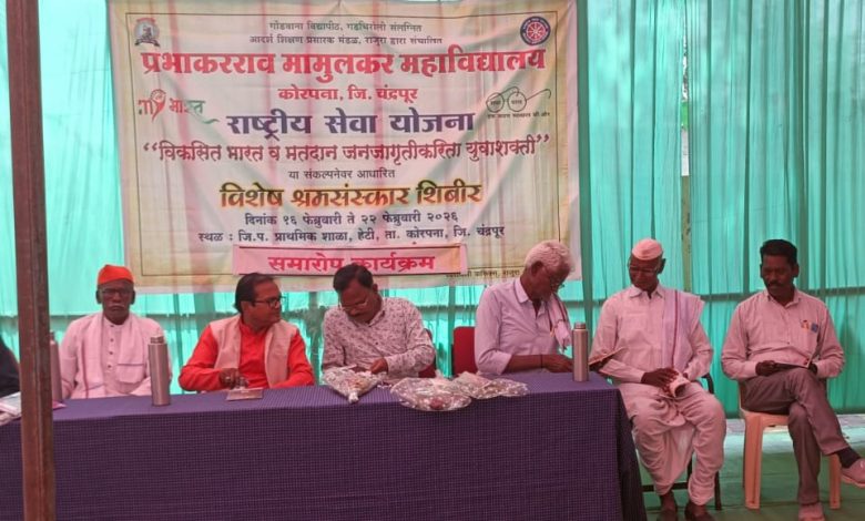 प्रभाकरराव मामुलकर महाविद्यालय कोरपनाच्या राष्ट्रीय सेवा योजना अंतर्गत आयोजित सात दिवसीय निवासी शिबिराचा समारोप हेटी येथील जि. प. प्राथमिक शाळेच्या प्रांगणात उत्साहपूर्ण वातावरणात पार पडला.