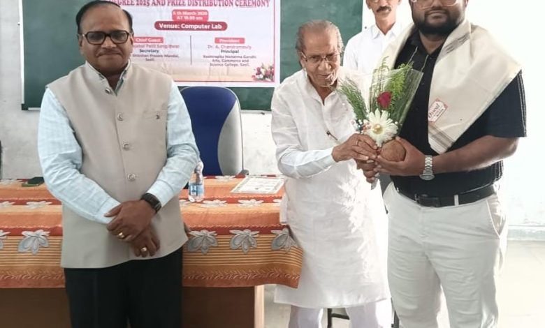 स्थानिक सावली येथील राष्ट्रपिता महात्मा गांधी महाविद्यालयात पदवी व बक्षीस वितरण समारंभ दि. ६ मार्च २०२६ रोजी उत्साहपूर्ण वातावरणात पार पडला. कार्यक्रमाच्या अध्यक्षस्थानी महाविद्यालयाचे प्राचार्य डॉ. ऐ. चंद्रमौली होते. प्रमुख अतिथी म्हणून भारत शिक्षण प्रसारक मंडळ, सावलीचे सचिव राजाबाळ पा.संगीडवार तसेच य. च. म. मु. वि. विभागीय केंद्राचे माजी संचालक प्राचार्य नारायण मेहेरे उपस्थित होते.