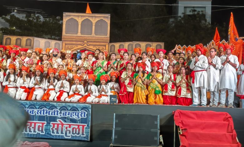 ब्रह्मपुरी : स्थानिक शिवजयंती उत्सव समितीच्या वतीने काल शुक्रवार, ६ मार्च रोजी ब्रह्मपुरी शहरात पारंपारिक पद्धतीने शिवजन्मोत्सव सोहळा मोठ्या दिमाखात साजरा करण्यात आला. या निमित्त आयोजित पालखी सोहळा आणि ‘शिवगाथा’ महानाट्याला नागरिकांचा उत्स्फूर्त प्रतिसाद लाभला.