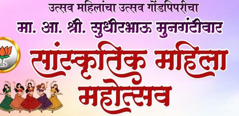 जागतिक महिला दिनाचे औचित्य साधून भाजपा महिला आघाडीच्या वतीने “उत्सव महिलांचा _ उत्सव गोंडपिपरीचा”, आमदार सुधीर मुनगंटीवार सांस्कृतिक महिला महोत्सवाचे आयोजन स्थानिक माता कण्यका परमेश्वरी सभागृहाच्या प्रांगणात आज (२८ मार्च) रोजी सायंकाळी सहा वाजता करण्यात आले आहे. या सांस्कृतिक महोत्सवाचे उद्घाटन माजी मंत्री तथा आमदार सुधीर मुनगंटीवार यांच्या हस्ते होणार असून कार्यक्रमाचे मुख्य आयोजक आमदार देवराव भोंगळे यांची उपस्थिती राहणार आहे.