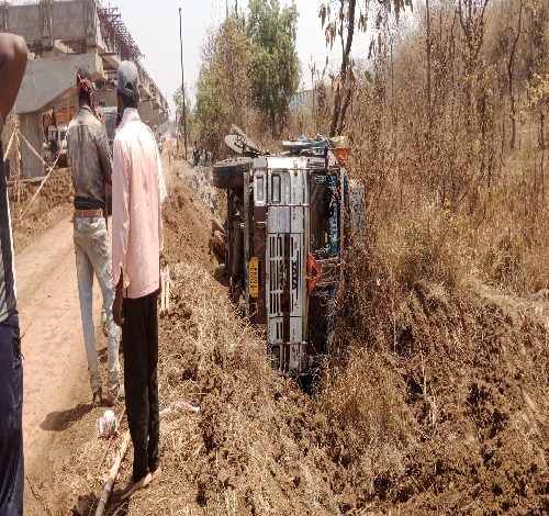ट्रक उलटून मोठा अपघात उडानपुलाच्या कामा मुळे दोन दिवसात दुसरी घटना