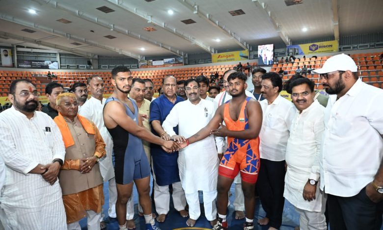 वर्धा जिल्ह्यातील देवळी येथे ग्रीको-रोमन महाराष्ट्र केसरी कुस्ती स्पर्धेचे आ. मुनगंटीवार यांच्या हस्ते उद्घाटन