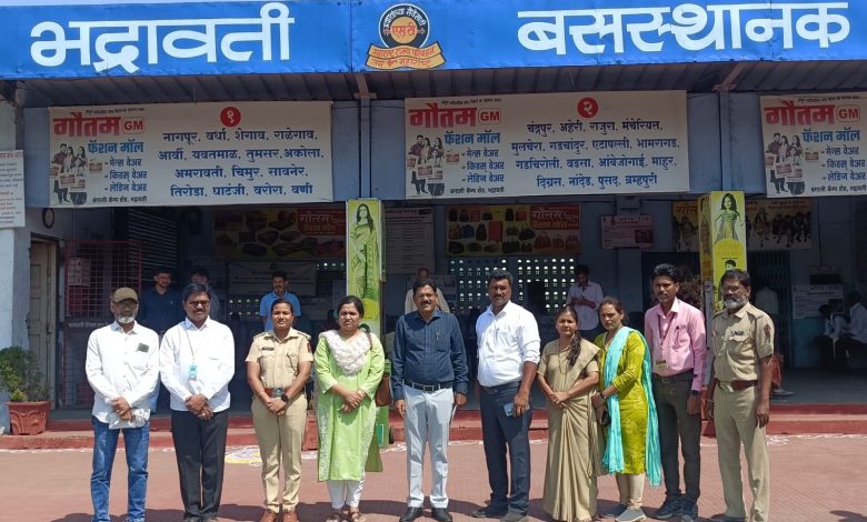 महाराष्ट्र राज्य मार्ग परिवहन महामंडळ अंतर्गत प्रादेशिक व्यवस्थापक अमृता ताम्हणकर पुणे प्रदेश व प्रादेशिक अभियंता पुणे आर. कांबळे यांच्या चमूने आज दिनांक ०६ एप्रिल रोजी भद्रावती बस स्थानकास भेट देऊन स्थानिक पत्रकार दिलीप मांढरे, प्रा.विवेक सरपटवार, प्रा.लिमेश माणूसमारे , चंद्रपूर आगार व्यवस्थापक पुण्यवर्धन वर्धेकर वाहतूक निरीक्षक उत्कर्षा चौधरी, यांचे उपस्थितीत स्वच्छता सर्वेक्षण अंतर्गत निवारा व परिसराची पाहणी केली.