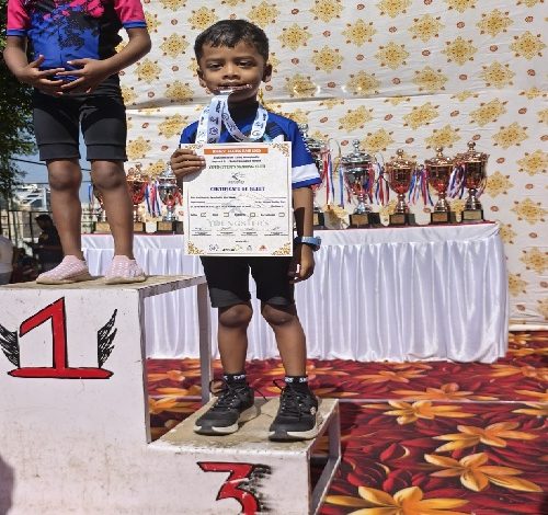 अंडर- 6 वर्षे इनलाईन गटात सहभागी झालेल्या अधीरने सुरुवातीपासूनच आत्मविश्वासपूर्ण खेळ करत प्रतिस्पर्ध्यांना कडवी टक्कर दिली. त्याच्या संतुलन, वेग आणि तंत्रातील अचूकतेमुळे त्याने सर्वांचे लक्ष वेधून घेतले आणि अखेर तृतीय क्रमांक पटकावण्यात यश मिळवले.